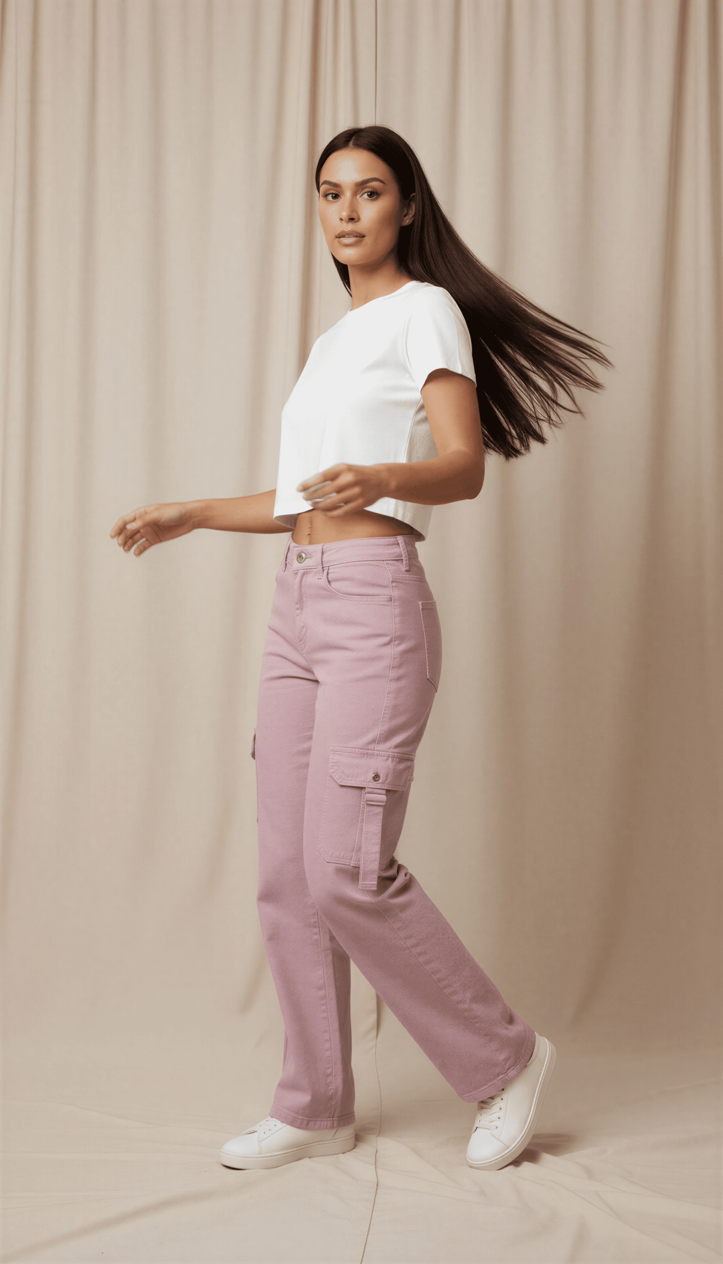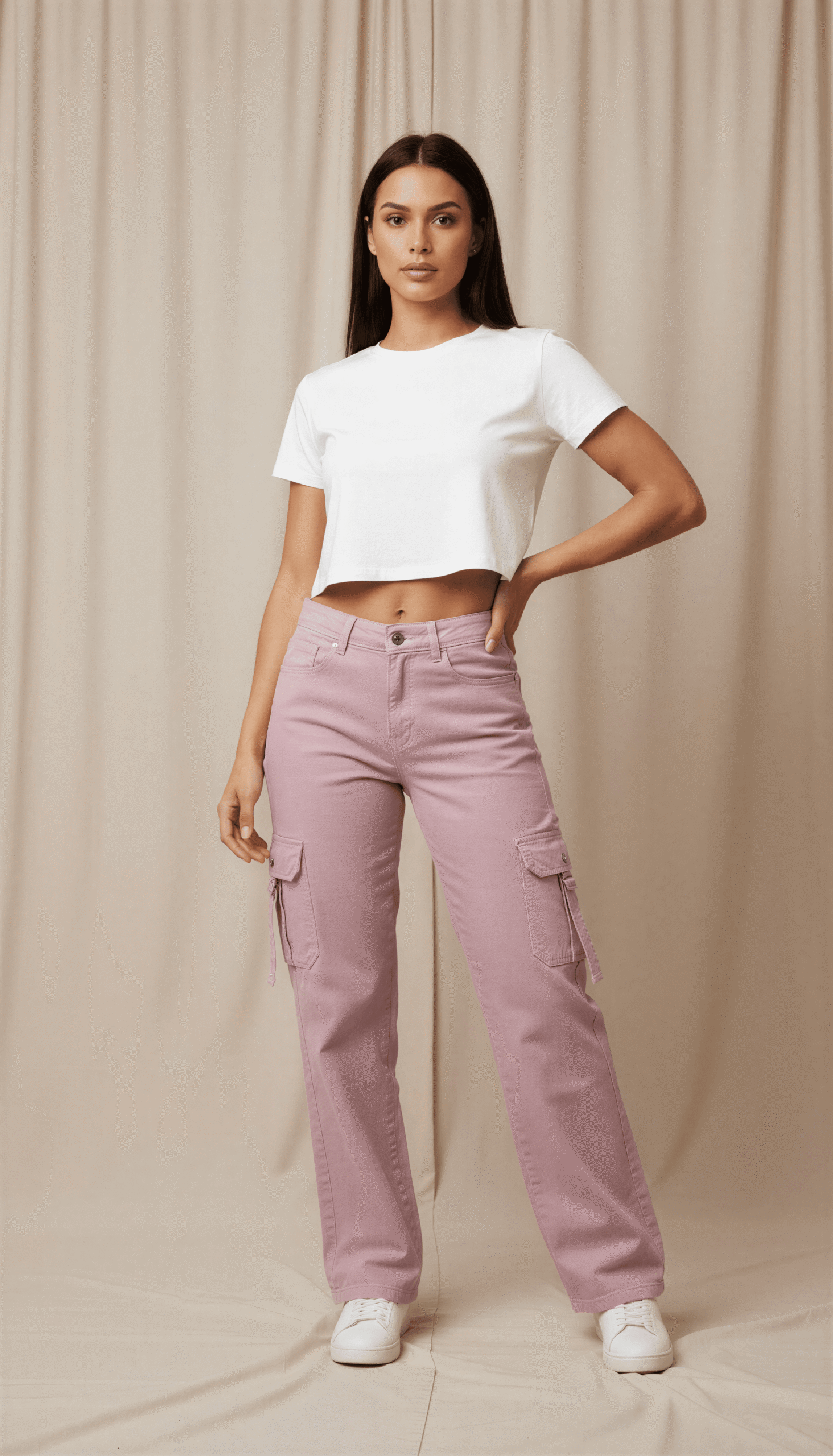 Bad-girl cargo jeans with big pockets and bigger energy. Street-style royalty.